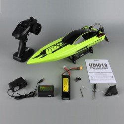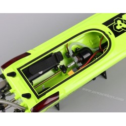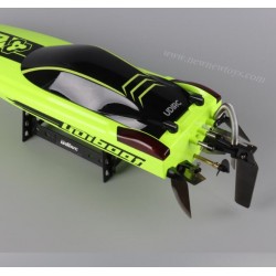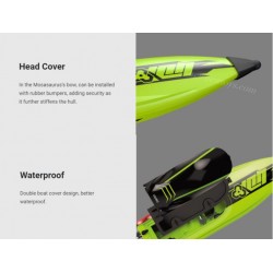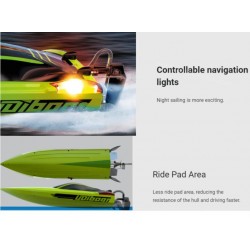simulation speedboat shape. The fastest running speed is about (40Km/H), the strong HS2812-3100KV Brushlee motor is full of power, and the water cooling system is adopted to prolong the heat dissipation life. It has the function of automatic righting after capsizing. Low power back reminder function.